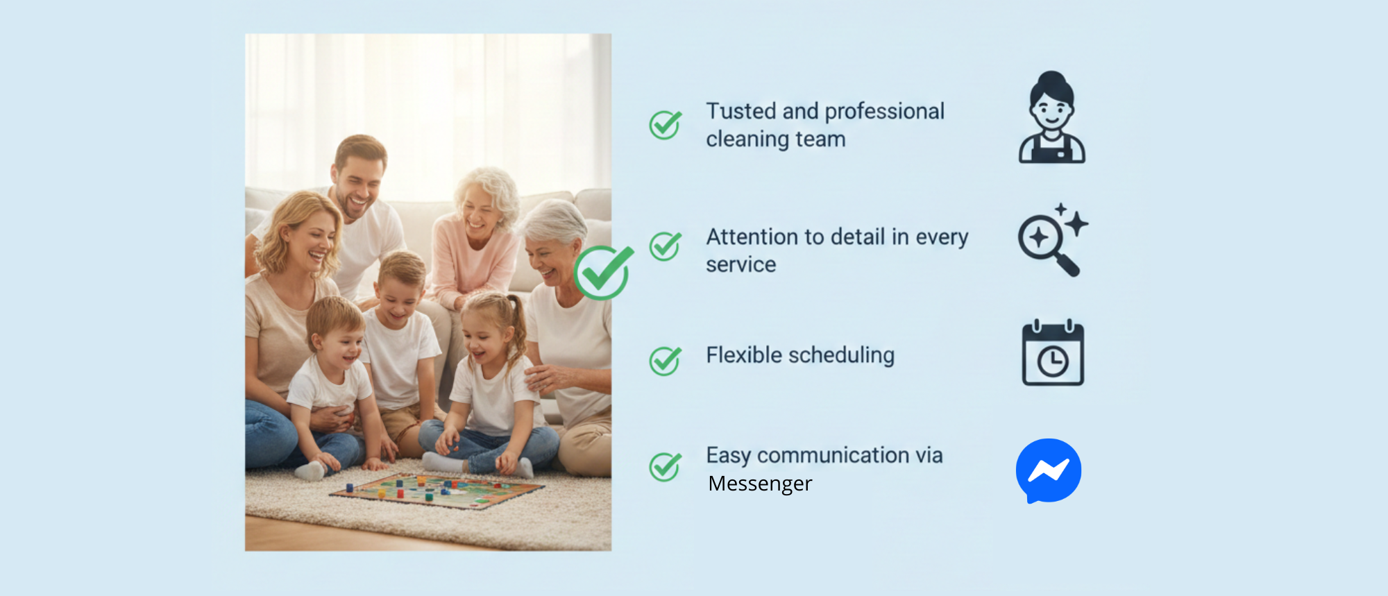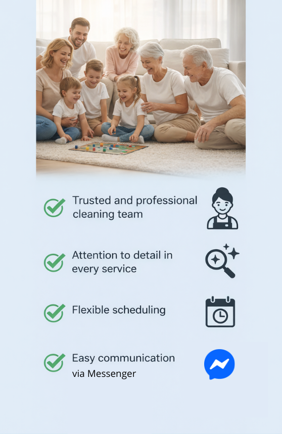 Reliable and detailed cleaning services that keep your home organized, comfortable, and welcoming.